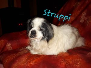 Prva skrbnica propustila ga je mikročipirati pa ga je, dok je bio star tek 10-ak mjeseci, ukrala jedna obitelj koja ga je koristila za “štancanje” štenaca koje bi onda prodavali na tržnici. Skrbnica i njena obitelj povremeno bi ga viđali, no kradljivci ga nisu željeli vratiti i tvrdili su da je pas oduvijek s njima. Bio je vječito gladan, viđen je i sa šugom na leđima, jedno je vrijeme šepao, sumnjalo je da je preživio moždani udar. Skrbnica je na kraju odustala, pa je Struppi ostao kod njih. Kad ga više nisu trebali, zbrinut je u skloništu, no navika da živi kod njih je ostala pa je bježao i vraćao se toj obitelji.